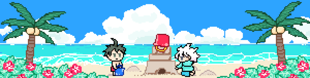 海デートで砂のお城を作ってる日狛のドット絵をポチポチ打ってみました。